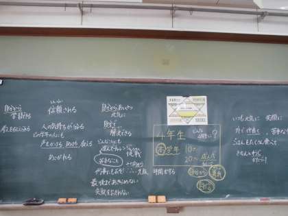 4年生は上級生であること,10歳は成人の半分の年であることを伝え,どんな4年生にみんなでなっていきたいか話をしました。たくさんの前向きな意見が出たので,それを元に学年目標を決めていきます。またどんな学年目標になったか,お伝えします。目標に向かって全員でがんばりましょう。