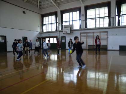 しっかり話を聞いた後は,思いっきりドッジボールをしました!