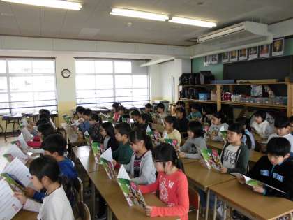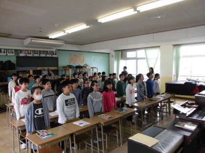 新しく着任されたスクールサポーターのくわ田先生と,初めての音楽の授業をしました。新学年の始まりにふさわしい「すてきな一歩」を歌いました。のびのびとした元気な歌声が印象的でした。