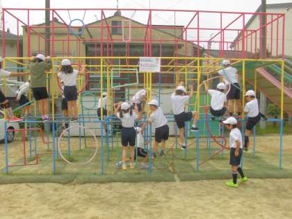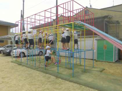 総合遊具をはじめとする遊具の使い方を確認して,実際にのぼりおりをしたり,移動をしたりしました。安全に気を付けて楽しく使っていきましょう。