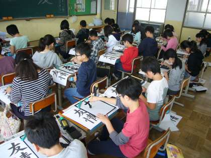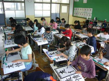 墨のにおいが教室に広がり、みんなの美しい字を書こうという気持ちを感じました。
