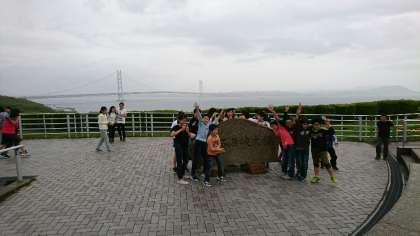 予定より早く淡路島に入ったので,淡路ハイウェイオアシスで休憩しました。雨が少し弱まったので,明石海峡大橋もみんなで見ることができました。