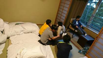 大きなトラブルもなく,宿に到着しました。入館式では,みんなが元気良くあいさつできました。その後は,夕食までの時間をそれぞれがのんびり過ごしています。