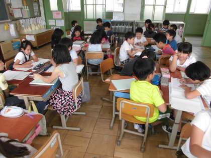 朝会で校長先生から憲法についての話をしていただいたこと,今月のこころの日のめあてが「マナーアップ朱七!!」〜みんなのルールをみんなでまもろう〜であることから,学級で「光りかがやく朱七の子」と「朱七のやくそく」について話し合いました。なぜきまりがあるのかということやきまりを守ると自分や学校がどのようになっていくかについて意見を出し合いました。