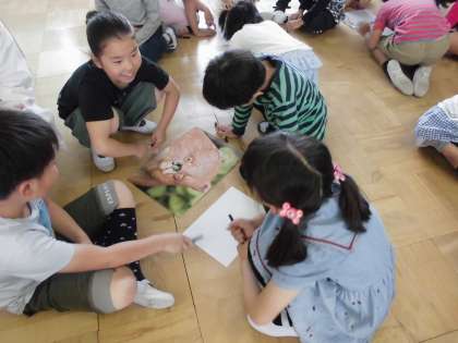 ゲストティーチャーの方々に来ていただき,学校の中の植物についての学習をしました。まずは,「まちくさ博士」が作った撮った植物にグループで名前を付ける活動をしました。どのグループも,その植物の形や生息している場所から思い思いの名前を付けていました。