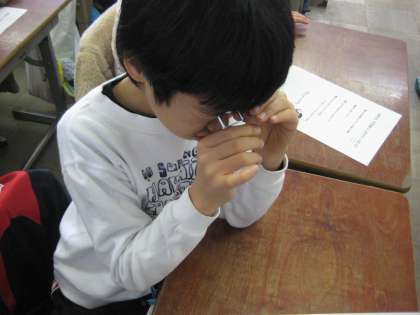 「雑草という名前の草はない」という言葉から始まった『植物は不思議がいっぱいだ』と題したお話は,実際に葉っぱの匂いを嗅いだり,ルーペで見たりしながら,「ドヒャー!?!」と思わず言いたくなる,植物の生き残り戦略のお話でした。もっともっと知りたい!聞きたい!と,興味を掻き立てられるようなお話で,楽しい楽しいあっという間の1時間でした。