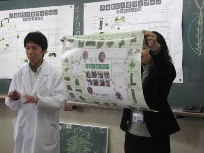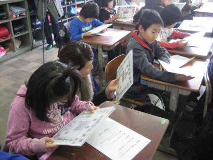 学校の中に生えている今まで気にも留めなかった野草に目を向け,名前をつけた「まちくさめぐり」。自分で撮った写真と自分でつけた名前を発見した場所に貼って,みんなで作った「まちくさマップ」。その完成品を今日,日写の方が持って来てくださったのです。一人一人に配られた小型版に見入っている子どもたちの顔はとってもうれしそう!素敵な自分たちだけのマップができました。自然に対する優しい気持ちで植物と仲良くなれた3年生の子どもたち。この活動が,環境に働きかけようとする行動力につながっていけばいいなと思います。
