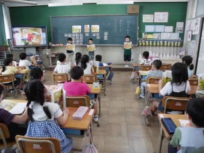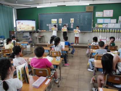 5月14日(月)国語の学習「おんどくをききあおう」では,「はなのみち」の音読発表会をしました。読み方のルールを守りながらも,自分らしい工夫した読み方で,選んだ場面を音読しました。