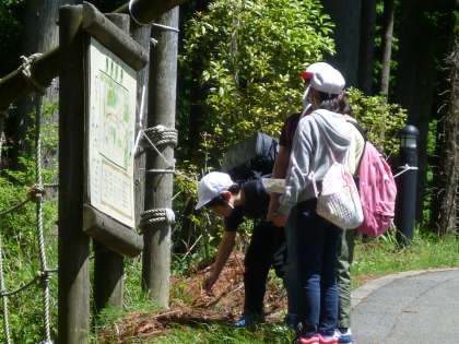 ネイチャービンゴは続きます。歩き回っている中で,立ち止まったり,しゃがんだりして一生懸命に探しています。うろうろと歩き回るので,足が疲れてきている子どももいます。普段学校では,こんなに歩かないかもしれませんね。