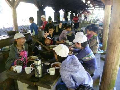 みんなの協力でてきぱきと仕事が進み,けっこう早くにカレーが出来上がりました。どのグループもとてもおいしいカレーが出来上がり,みんな満足そうに食べていました。