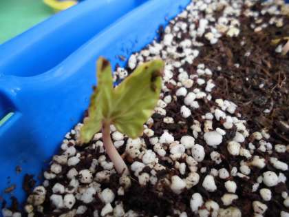 次の週には,芽が出てきました。5月14日(月)に,芽の観察をしました。