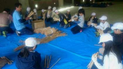 松上げは,この花背の地に伝わる伝統行事です。今夜にその松上げを見ることができます。今から,その地松を作ります。作り方を教えていただき,さっそく作り始めました。