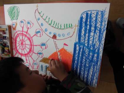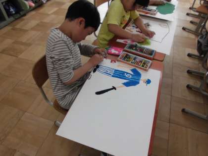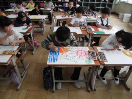 6月からの図画工作では,絵の具を使ったっ学習が入ってきます。すでに絵の具を準備している為か,「いつから絵の具を使うの?」と聞きに来る児童が増えてきました。きっと絵の具を使うことを楽しみにしているのでしょう。今回は,クレヨン(クレパス)を使った絵を仕上げました。どの子も夢中になって絵を仕上げていました。