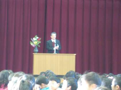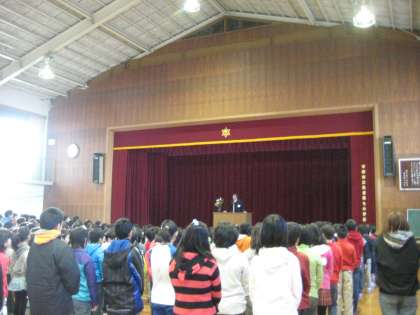 校長先生は,「新しい年,新たな出会いを大切に,自分から積極的に働きかけ,さらに自分を成長させていこう」というお話をされました。