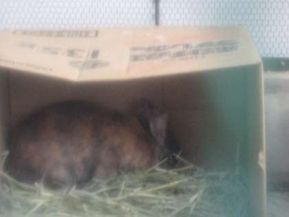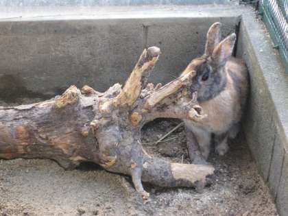 1月8日(土),今朝の気温は0度。寒い朝になりました。うさぎのチョコはどうしているでしょう・・・ダンボールの寝床に入っています。わらのお布団が気持ちよさそうです。最近のお気に入りは,木の枝をかじること。今日も一心にがりがりやっていました。