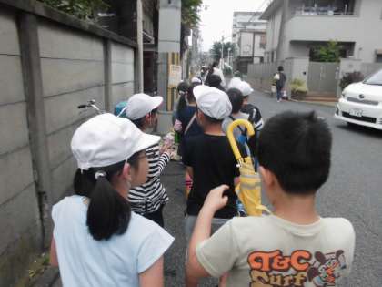 生活科の授業でまち探検をしました。今日は,学校の北側と西側を歩きました。お店や施設がたくさんあり,子どもたちも楽しんでいました。初めて通る道もあったようで,「こんなお店があったんだ!」と新しい発見をできた児童もいました。