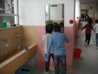 厳しい寒さが続いていますが、給食も始まり、子どもたちは元気に過ごしています。給食のあと、1年生が歯をみがいているところを見かけたので、撮らせてもらいました。