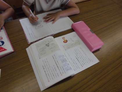 国語の「気になる記号」の学習では,自分が選んだ記号や標識について,報告する文章を書きます。そのために今日は図書室と調べ学習室で本を選び,記号や標識について調べました。子ども達が読む本については,学校司書の先生があらかじめ集めておいてくださいました。様々な情報の中から,自分の文章に必要な文や言葉を選んでいきましょう。