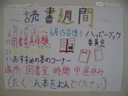 6月11日(月)から6月15日(金)は,読書週間です。