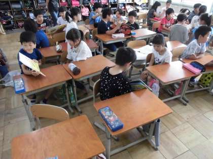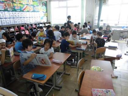 読書週間の取組として,アイビー学年の5年生に読み聞かせをしてもらいました。抑揚をつけたり,登場人物の気持ちになって感情をこめたりして読む姿はさすが高学年でした。3年生の子ども達も,本に引き込まれていました。3学期には,3年生が5年生に読み聞かせをします。そのために,毎日の音読をがんばりましょう。おうちの方も,音読を聞き,子ども達にはげましの言葉をお願いします。