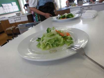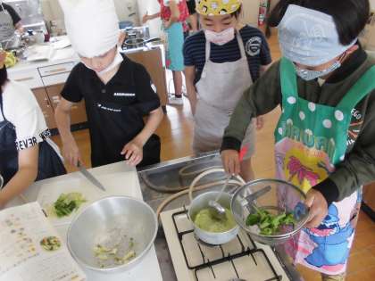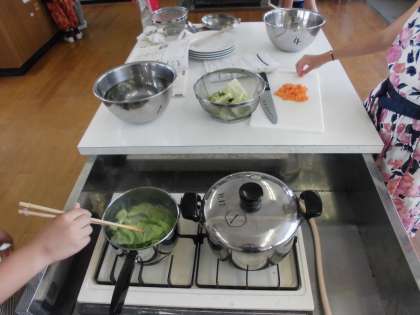 野菜は,ゆでる前と後ではどのような変化があるのか想像を膨らませながら,完成に向けて協力する姿が見られました。