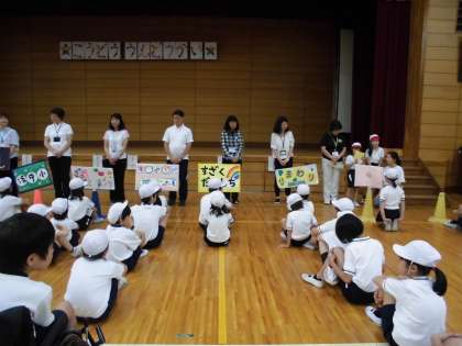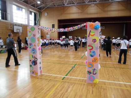 高倉校に到着すると4年生が出迎えてくれて,体育館へ案内してくれました。素敵なプログラムや入場門も用意していただいていました。3組の友だちにとっては,はじめての合同運動会でしたが,あたたかい準備に緊張が和らいだことと思います。