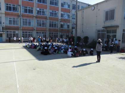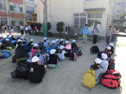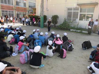 学校に集合して,出発式を行いました。校長先生からのお話や今回引率をしていただく先生の紹介がありました。
