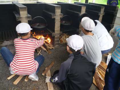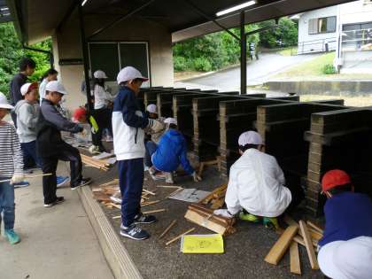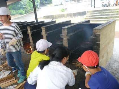 いよいよ野外炊事です。係に分かれて仕事をしています。火の係は,薪をうまく組んでいきました。火がつくように,そして,燃え上がるようにと考えています。