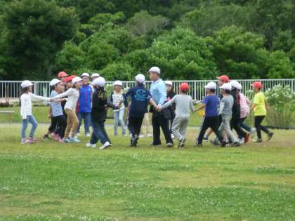 浦山フォトラリーから帰ってきたグループから,芝生広場で遊んでいます。みんななかよしです。この3日間で,ますます仲間の絆は深まるのではないでしょうか。