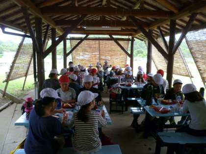 3日目の朝を迎えました。曇り空ですが,すがすがしい朝です。ウグイスのさえずりが聞えてきます。みんな,よく寝たようで,すっきりした顔で朝の活動を始めています。体調をくずす子もなく,みんな元気です。