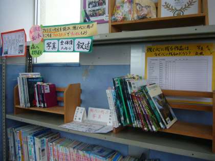 お気に入りのフォトエッセイをフォトスタンドで推薦する学習を国語科でしています。学年の本棚にブックコーナーを作り,読書の時間などに読んでいます。心に残る写真と叙述から作品全体のメッセージを読むという少し難しいことに挑戦します。どんなフォトスタンドができるか楽しみです。