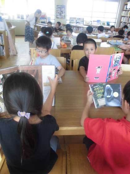 読書が大好きな2年生。今日は,図書室に行って,おすすめの本を読み合いました。動物が好きな子同士で図鑑を見合ったり,大型絵本を楽しそうにめくったり,様々な本に親しみました。読んだ後は,読書ノートに書いていきます。また,みんなのおすすめの本を聞きたいと思います。