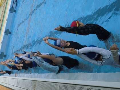 蹴伸びができたら,10級合格,5メートル以上で9級, 10メートル以上で8級,25メートル泳げると7級合格です。みんな自分のめあてをしっかりもって,検定に臨みました。