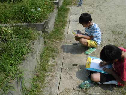 まちくさ博士からのお願いを受けて,校内にまちくさを見つけに行きました。第1回「まちくさ みっけ」で活動した経験が生きており,子ども達は進んでお気に入りの植物を見つけ,名前を付けていました。夏休みのまちくさみっけの活動が楽しみです。おうちの方も一緒にやってみてはいかがでしょうか。