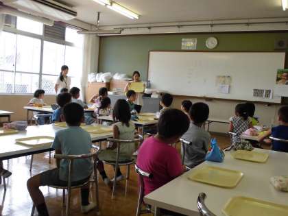 今週は,給食をランチルームで食べています。先週は,1年1組が食べました。いつもと同じ給食もランチルームで食べると楽しくおいしくいただくことができました。