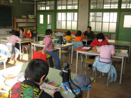 1月29日(土),土曜学習を行いました。今日は9人の子どもたちが参加しました。宿題,家から持ってきた問題集,学校にあるプリント・・・思い思いの学習に取り組みました。はじめは静かに自分の勉強をしていた子どもたちでしたが,9時半を過ぎた頃からそわそわし始めました。実は,今日は10時から,おやじの会主催のドッジビー大会があるのです。