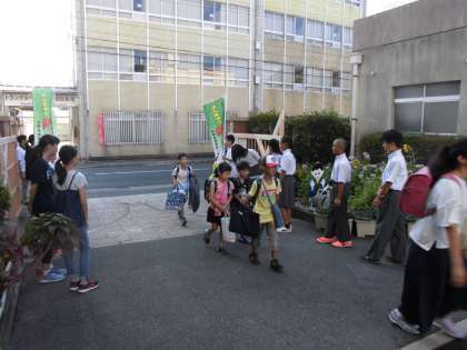 登校してくる児童も,正門で待っている児童・生徒も,みんな2学期の始まりを意識して,元気よくあいさつができていました。