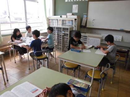 国語の学習では,「里山は,未来の風景」を読んで,もっと知りたいと思ったことについて,調べていきました。同じような課題を立てている友達と一緒に学習する姿が見られました。先週の学習で,辞典の使い方を学んでいたので,子ども達は自分でどんどん調べ学習を進めていきました。学習のつながりを大切にしていきたいと改めて思いました。