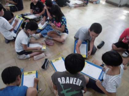 夏休み中に,環境問題に苦しむ地球を救うために,どんなことが出来るのか考えて実践した子ども達,今日はそれぞれが夏休みにしてきたことをグループで話し合いました。