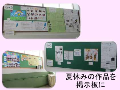 2学期が始まってまだ10日足らずです。学校のリズムを取り戻し,学習に向かう姿を見ていただくことができたでしょうか。また,夏休みの力作が,教室や廊下,階段の掲示板に並べられていました。自分のお子様の作品と共に,同じクラスの子どもの様々な作品も見ていただけたでしょうか。また,その後の懇談会では,学年に応じて今取り組んでいることや今後の見通しについて話させていただいたかと思います。