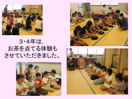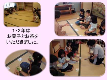 学年によって,少し体験の内容を変えて取り組みました。抹茶を初めて口にする子どももいたようです。畳の間に,正座して長くすわっていると,足が痛くなってきます。どうしても姿勢がくずれてきます。長い時間待つことになりましたが,静かに他の学年の取組を見ていました。