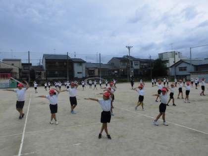 運動会に向けて,4年生,3年生で団体演技の練習をがんばっています。今まで体育館で練習しながら動きを覚えていましたが,今日はいよいよ運動場に出て,隊形移動を中心に練習しました。