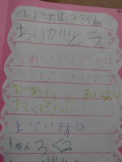 昨日12日(水)に交流学習をした,北総合支援学校の友だちにお礼のお手紙を兼ねて,運動会の招待状を書きました。3組や交流学級の友達のがんばる姿をぜひ見に来てほしいと思います。