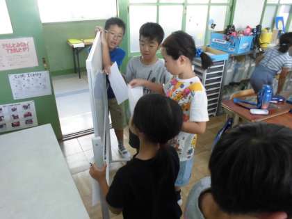 社会の学習で,来月,スーパーマーケットの見学に行きます。今日は,見学したときに知りたいことをグループでホワイトボードに出し合い,交流しました。それぞれの質問についての予想を立てていきます。見学をよりよいものにするためにみんなで学習を進めていきましょう。