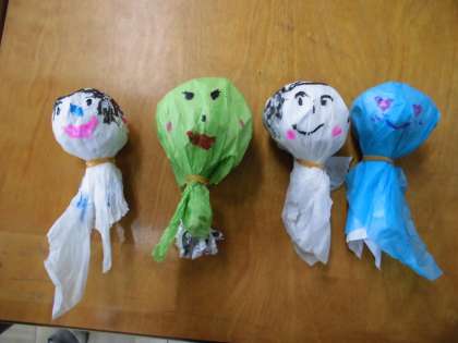 1年1組のみんなも,てるてるぼうずを作っていました。