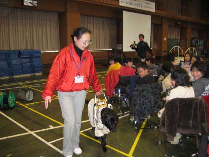 「ハーネスは心のきずな〜盲導犬とともに〜」と題して,盲導犬の訓練の実演を見せてもらったり,盲導犬についてのビデオを観たり,ユーザーの方のお話を聞いたりしました。盲導犬はユーザーにとって目であり,友であり,かけがえのない存在なのだということが分かりました。