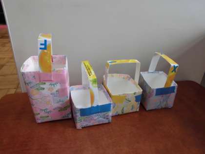 前回は,紙粘土を使ってアンパンマンを作り,お父さん,お母さん,お姉ちゃんにプレゼントしました。第2弾は,型抜きの学習をしています。紙粘土を平たく伸ばしてクッキーの方で型抜きをしていきます。型からは慎重に抜かないと形が崩れてしまいます。注意しながら作業をしていました。牛乳パックを使ってプレゼントバックを作って,今週と来週にプレゼントをする予定です。楽しみです。