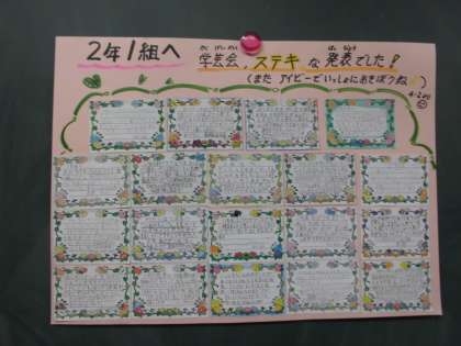 今日のアイビーのペアである2年生と感想を伝え合う時間に,2年生のみんなから「とってもおもしろかった。」と言ってもらい,とても嬉しそうでした。