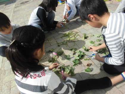 5月から育てていたさつまいもを掘り起こしました。大きいおいもに大興奮!おいもを手に取り,自分の顔と比べている子もいました。さつまいも堀の後は,さつまいもの茎にある葉を一枚一枚切り落としていきました。さつまいもの茎は,きんぴらにするととてもおいしいのです。今日,少しですがさつまいもの茎を持ち帰っています。良かったら,召し上がってみてください。さつまいもは,また2年生みんなで蒸かして頂きたいと思います。