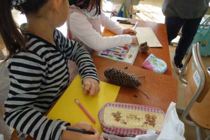 先日の京都御苑での「秋見つけ」で集めたまつぼっくりなど「秋を感じるもの」をじっと見つめて,思ったことや感じたことを詩で表しました。一つのものをじっくりと見ることは,自分の心を見つめることにつながり,それが豊かに表現されていました。。